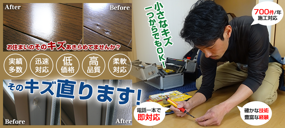 床 家具 サッシ等お住いのキズ補修専門業ハウスリペアー小財 京都府宇治市